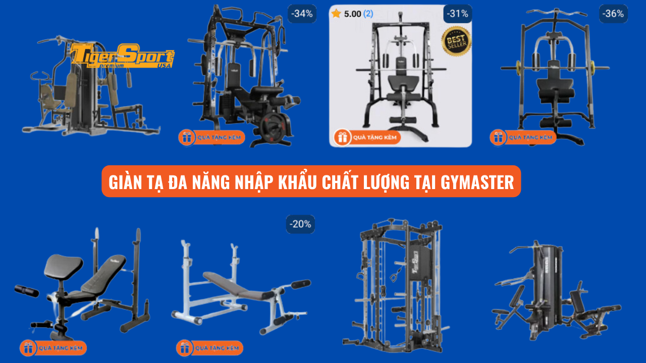 Gymaster cung cấp nhiều loại giàn tạ đa năng với mẫu mã và tính năng đa dạng, phù hợp với nhiều nhu cầu tập luyện ở nhà hoặc phòng gym thương mại. Từ những  giàn tạ có tính năng cơ bản đến những mẫu cao cấp, hiện đại, bạn đều có thể dễ dàng tìm thấy sản phẩm phù hợp với mục tiêu và khả năng tài chính của mình.